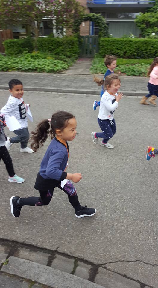Vorige week donderdag, Witte Donderdag, hebben de kinderen van basisschool De Lanteerne zich opnieuw enorm ingezet voor de Kleinschalige Projecten Indonesië.Middels een sponsorloop renden ze zoveel mogelijk rondjes. De jongste loper 4 jaar de oudste 12.Zoals dat op een Jenaplanschool gewoon is, hielpen de oudsten de kleinsten.Elkaar aanmoedigend, hand in hand rennend werden zoveel mogelijk rondjes gelopen.Langs de kant ouders, verzorgers en leerkrachten die bemoedigende woorden riepen en met trots keken naar deze bijzondere gebeurtenis.Dit jaar liep voor het eerst ook Elyf mee, de achterkleindochter van opa en oma Vandeursen.Als je aan haar vroeg waarom de sponsorloop werd gehouden antwoordde ze: 'voor de kindjes die niet veel hebben, daarom moet je geld geven.Pas 4 jaar en al zo betrokken bij de activiteiten van school, de Kleinschalige Projecten.Natuurlijk maakt ze dit ook van dichtbij mee wanneer haar opa, Anton Vandeursen, in Indonesië is.En ons bij het bezoeken van de projecten mooie filmpjes en foto's toestuurt die keer op keer worden bekeken.Over een tijdje wordt het bedrag bekend gemaakt, dit zullen we uiteraard met jullie delen!